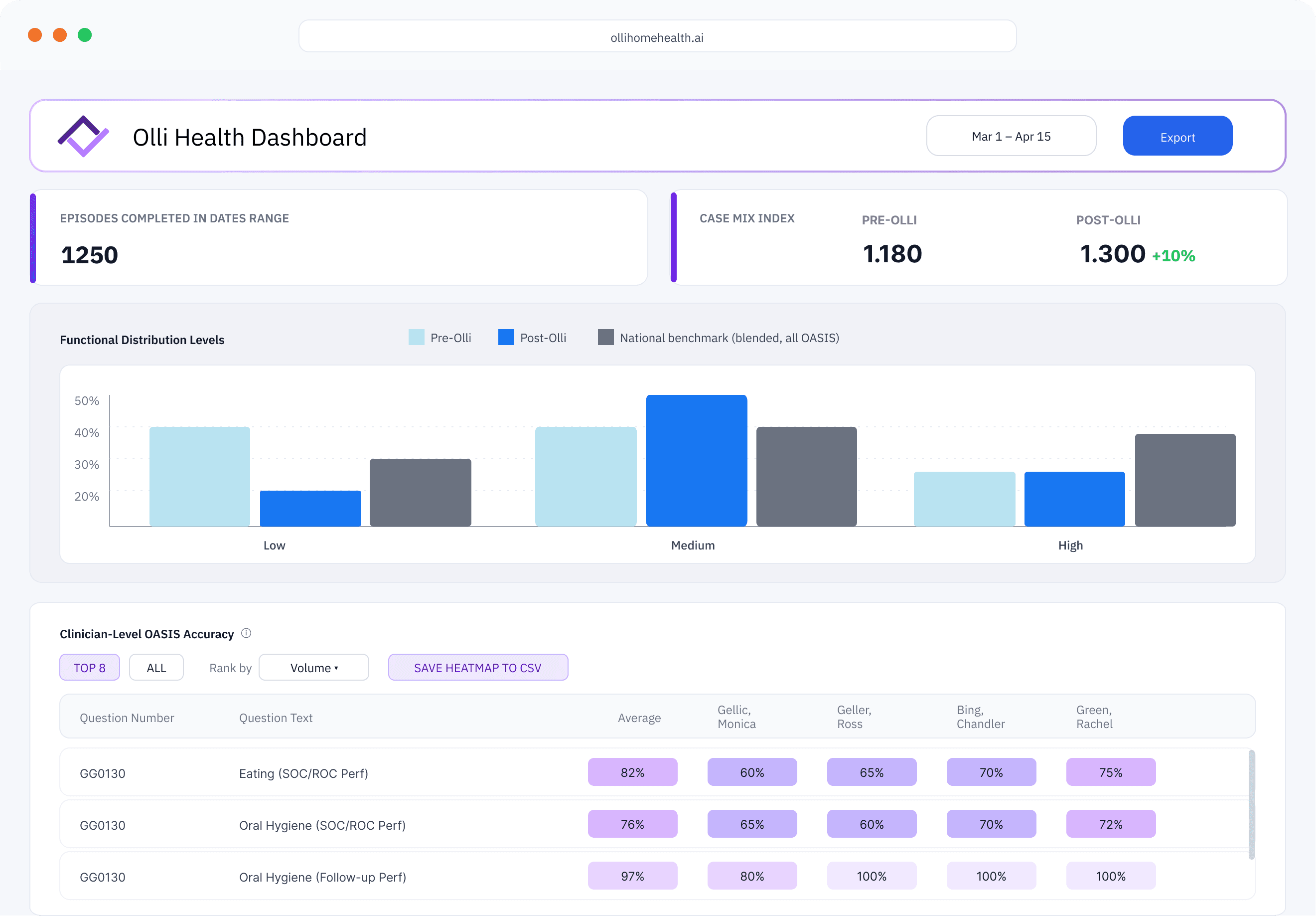 See CMI improvement insights and clinician-specific OASIS performance as they happen, so you can act faster, optimize quality, and protect revenue.